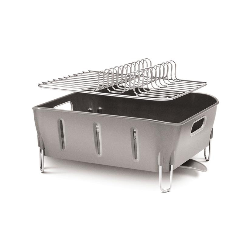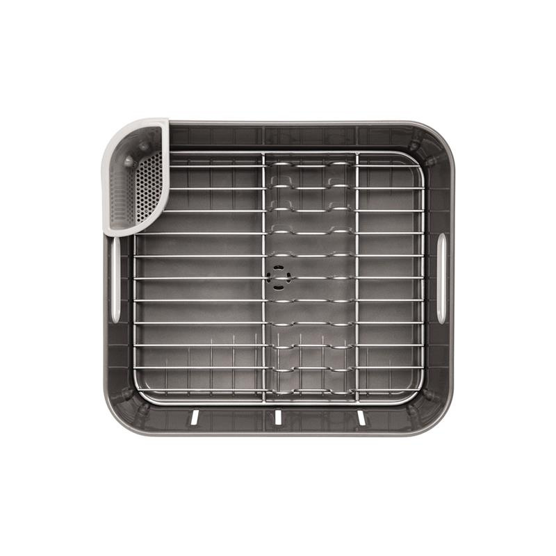 Kompaktowy ociekacz idealny do małych kuchni wykonany z tworzywa i ze stali. Dopasowany do kwadratowych zlewozmywaków.