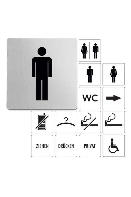 Samoprzylepny szyld "dla mężczyzn" wykonany został ze stali nierdzewnej. Jest łatwy w monatażu, a przy okazji ma ciekawy i estetyczny wygląd.