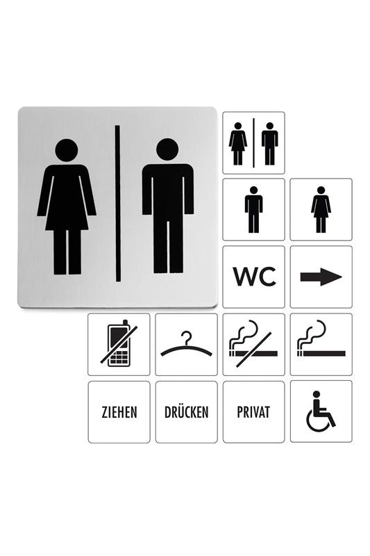 Samoprzylepny szyld "toalety" wykonany został ze stali nierdzewnej. Jest łatwy w monatażu, a przy okazji ma ciekawy i estetyczny wygląd.