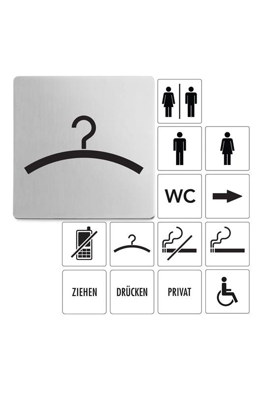 Samoprzylepny szyld "garderoba" wykonany został ze stali nierdzewnej. Jest łatwy w monatażu, a przy okazji ma ciekawy i estetyczny wygląd.