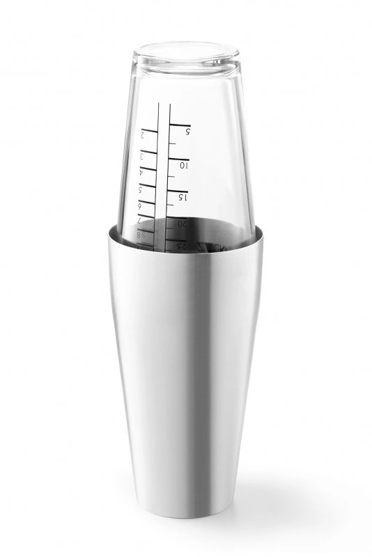 Wykonany z matowej stali nierdzewnej i szkła. Idealny do przygotowywania koktajli i drinków. Szklanica posiada praktyczną podziałkę, ułatwiającą przygotowywanie drinków.