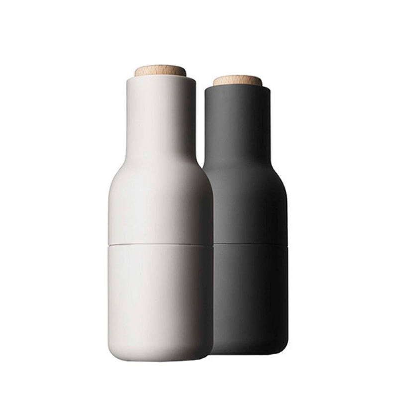 Oryginalne kultowe młynki do soli i pieprzu kształtem nawiązujące do butelki. Ceramiczny mechanizm mielący umiejscowiony jest na górze dzięki czemu przyprawy nie rozsypują się. Aby zmielić zawartość wystarczy przechylić młynek górę do dołu i pokręcić. Młynek jest funkcjonalny, a przy tym ma ciekawy i niebanalny wygląd.